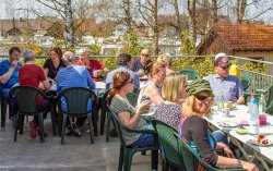 Am Strandbad Moos und am Wellnesshotel vorbei ging es entlang der Radolfzeller Uferpromenade bis der Rechtsschwenk zum Heimathafen erfolgte. Eine Minigruppe um den Jugendwart Harald zog es noch weiter die Mettnau hinaus. Die kamen deswegen auch zu spät zum leckeren Mittagessen, welches Rudi für alle zubereitet hatte. Die vielen Kuchenspenden trugen zum geselligen Ausklang des Anpaddelns bei.