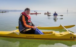 Der jüngste Teilnehmer kam aus der Vereinsjugend, die zu dritt am Start waren. Der älteste wird demnächst 84 Jahre alt und blickt auf 54 Jahre Paddeln zurück. Er war ganz vorne dabei.
